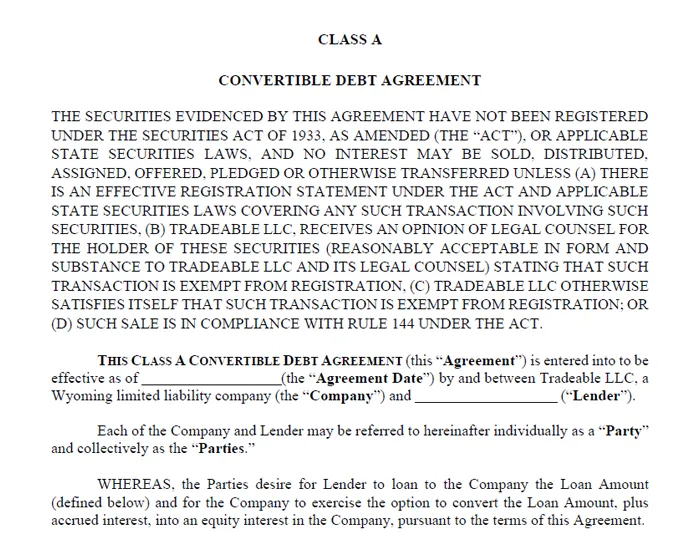 Convertible Debt Agreement (Class A)